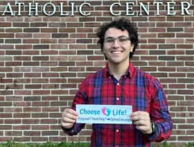 Nacido y criado en una familia católica, Gabriel Dionisi, de 22 años, viene impulsando un apostolado provida con calcomanías para autos que promueven elegir la vida y ofrecen ayuda a mujeres embarazadas en crisis.
